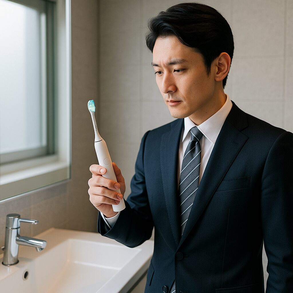平日の夜、仕事から帰宅後に自宅の洗面所で、一般的な手磨き用歯ブラシを使い、2〜3分ほど歯を磨く生活を続けていました。