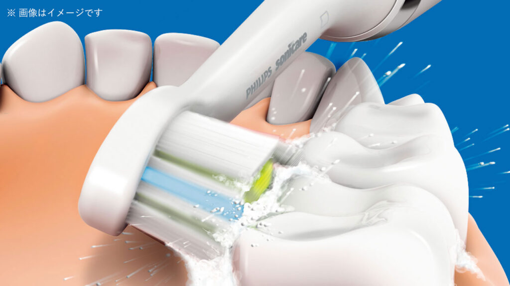 ソニッケアーの強みは、力を使わず歯垢を浮かせる設計にある