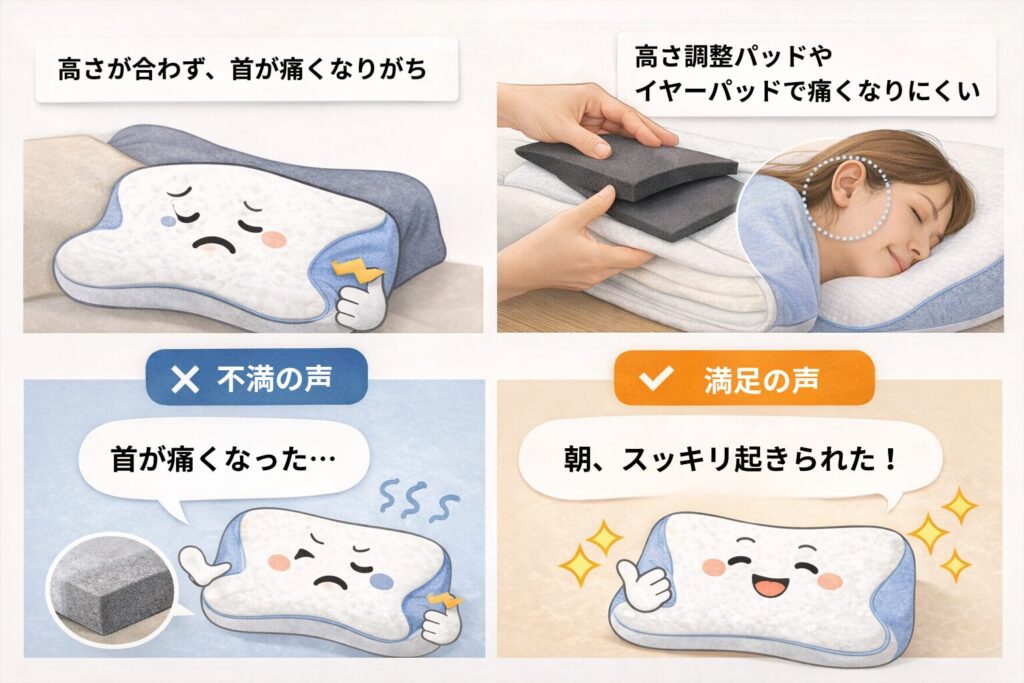 ストレートネックの方は、首への負担軽減効果が期待できるため、高さ調整パッドを活用して最適な高さを見つけることが重要です。